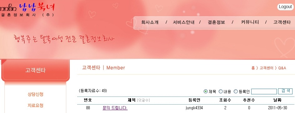 이거... 뭔가 냄새가 나긴 합니다-_- 감자총각의 방송신청은 5월7일이었는데 5월말에 남남북녀라는 싸이트에 중매알선 요청을 했다니.. 뭔가 잘못되도 한참은 잘못된 것 같은데..